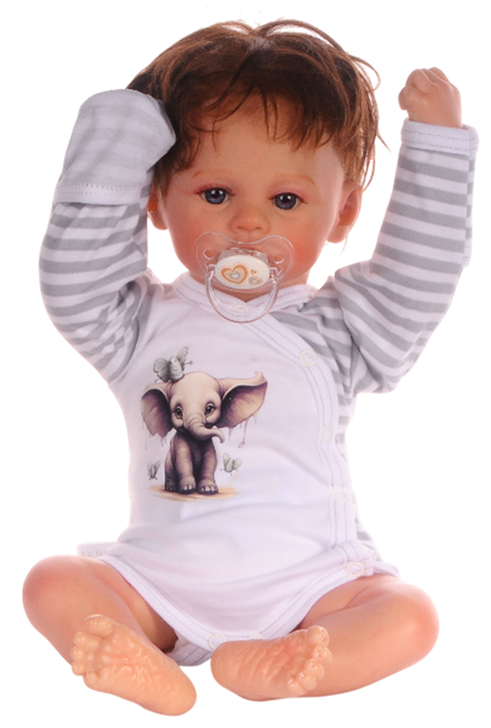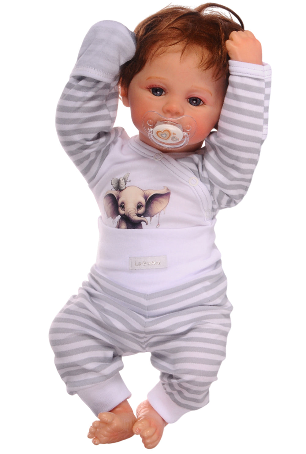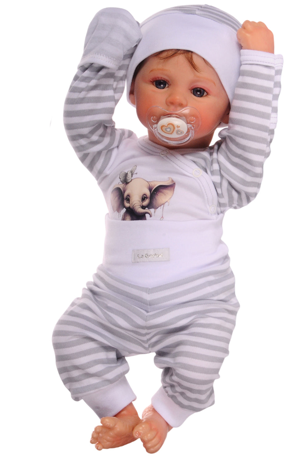 Baby Anzug Wickelbody Hose Mütze in Weiß mit Elefanten Aufdruck