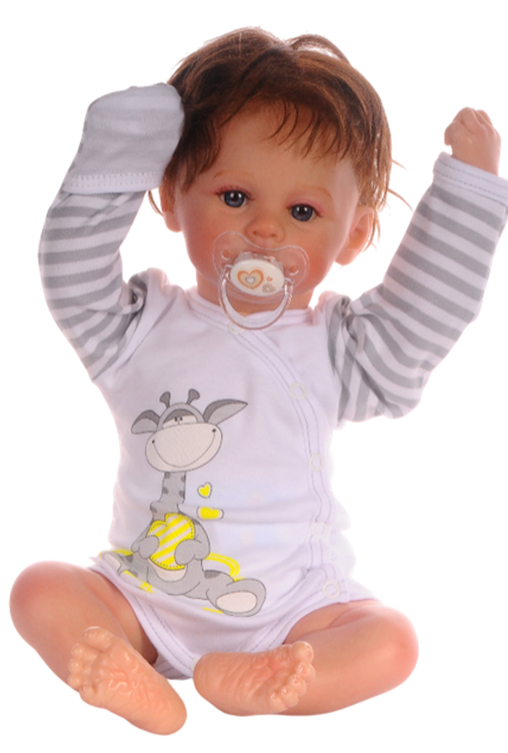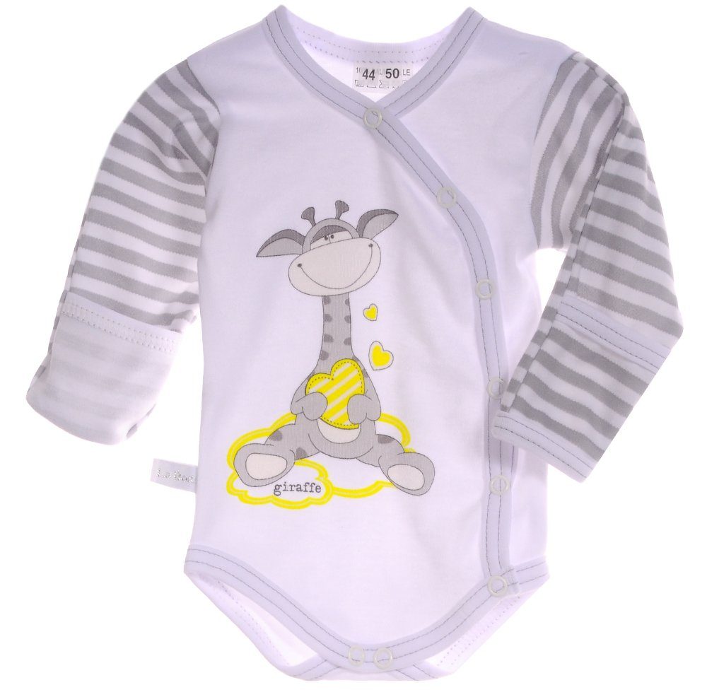 Baby Anzug Wickelbody Hose Mütze in Weiß mit Giraffen Aufdruck