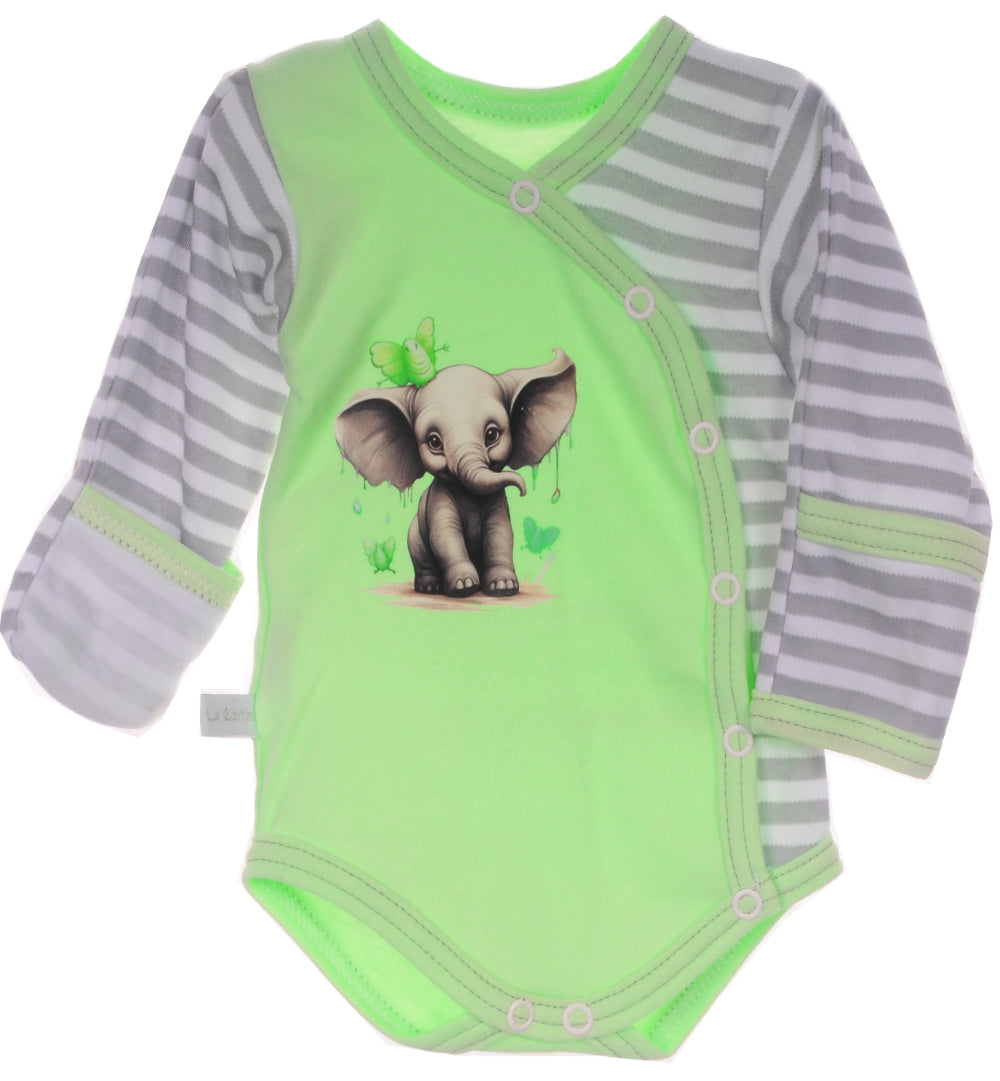 Baby Body Wickelbody mit Kratzschutz in Gerün gestreift
