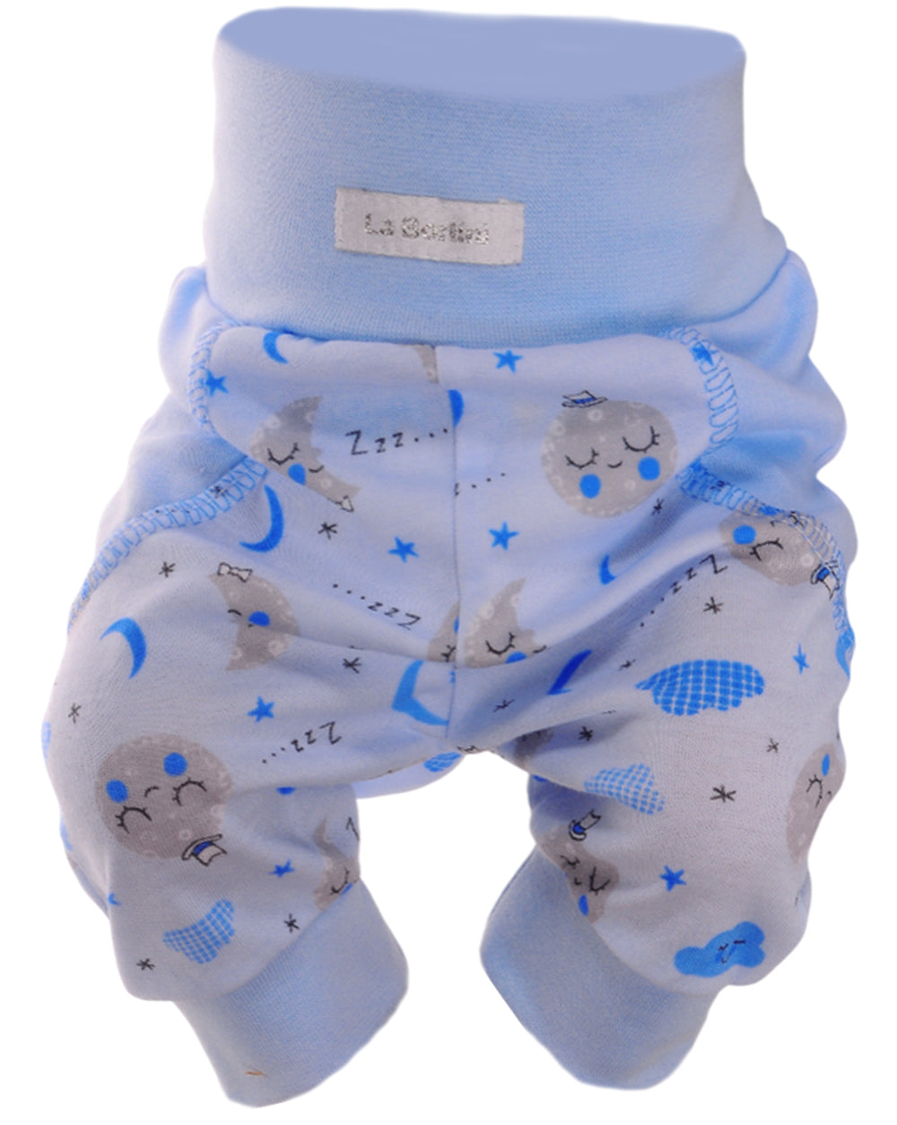 – Babyhose mit Füßchen in Blau mit Mond- und Wolken-Muster