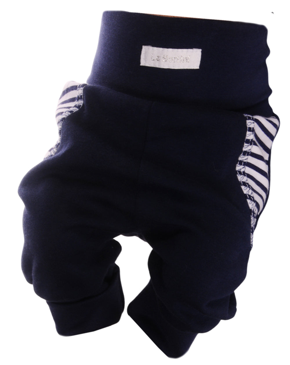 Diese hübsche Babyhose in Blau mit seitlichen Streifen überzeugt durch ihr zeitloses Design und hohen Tragekomfort. Gefertigt aus reiner Baumwolle ist sie besonders weich, hautfreundlich und angenehm zu tragen – perfekt für die empfindliche Haut von Neugeborenen und Babys. Der elastische Bund sowie die langen Mitwachsbündchen aus einem Baumwoll-Elasthan-Mix (95 % Baumwolle, 5 % Elasthan) sorgen für eine optimale Passform und viel Bewegungsfreiheit. Ob für Alltag oder als Ergänzung zur Erstausstattung – diese Hose ist ein vielseitiger Klassiker für alle Jahreszeiten.