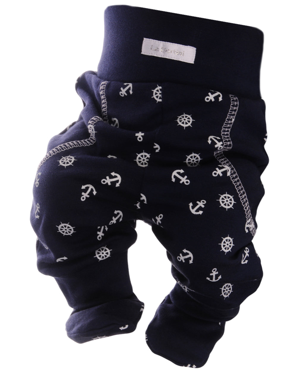 Baby Hose mit Füßchen in Blau mit maritimem Anker gemustert