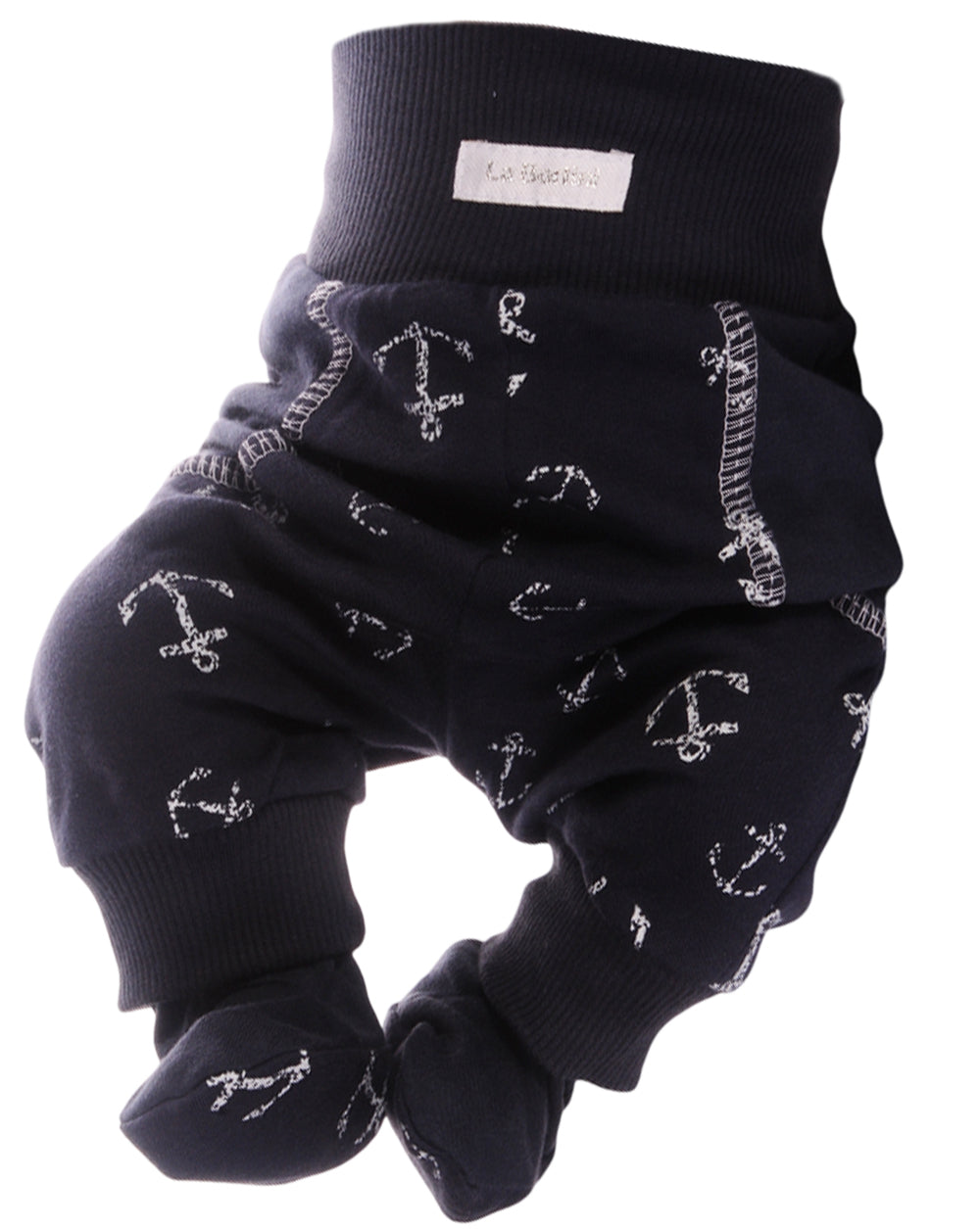 Diese gemütliche Babyhose mit Füßchen ist in einem klassischen Blau gehalten und mit einem stilvollen Anker-Muster versehen – perfekt für einen maritimen Look. Sie bietet dank des weichen, elastischen Bunds einen besonders angenehmen Sitz und lässt sich leicht an- und ausziehen, ohne einzuengen. Die integrierten Füßchen halten kleine Babyfüße warm und sorgen für zusätzlichen Komfort – ganz ohne Socken.
