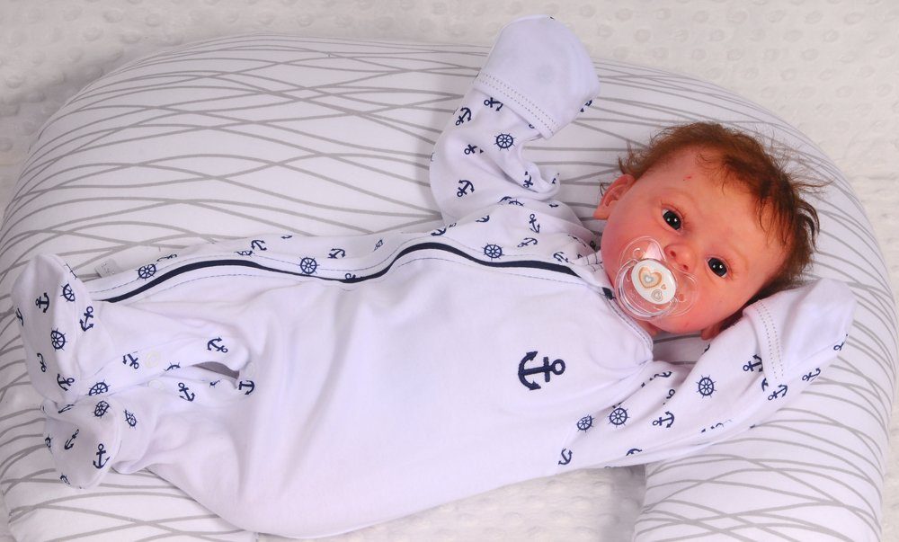 Baby Strampler Schlafanzug in Weiß mit Anker Muster