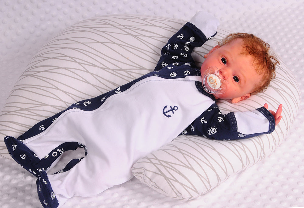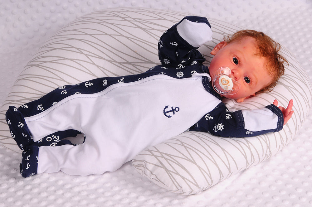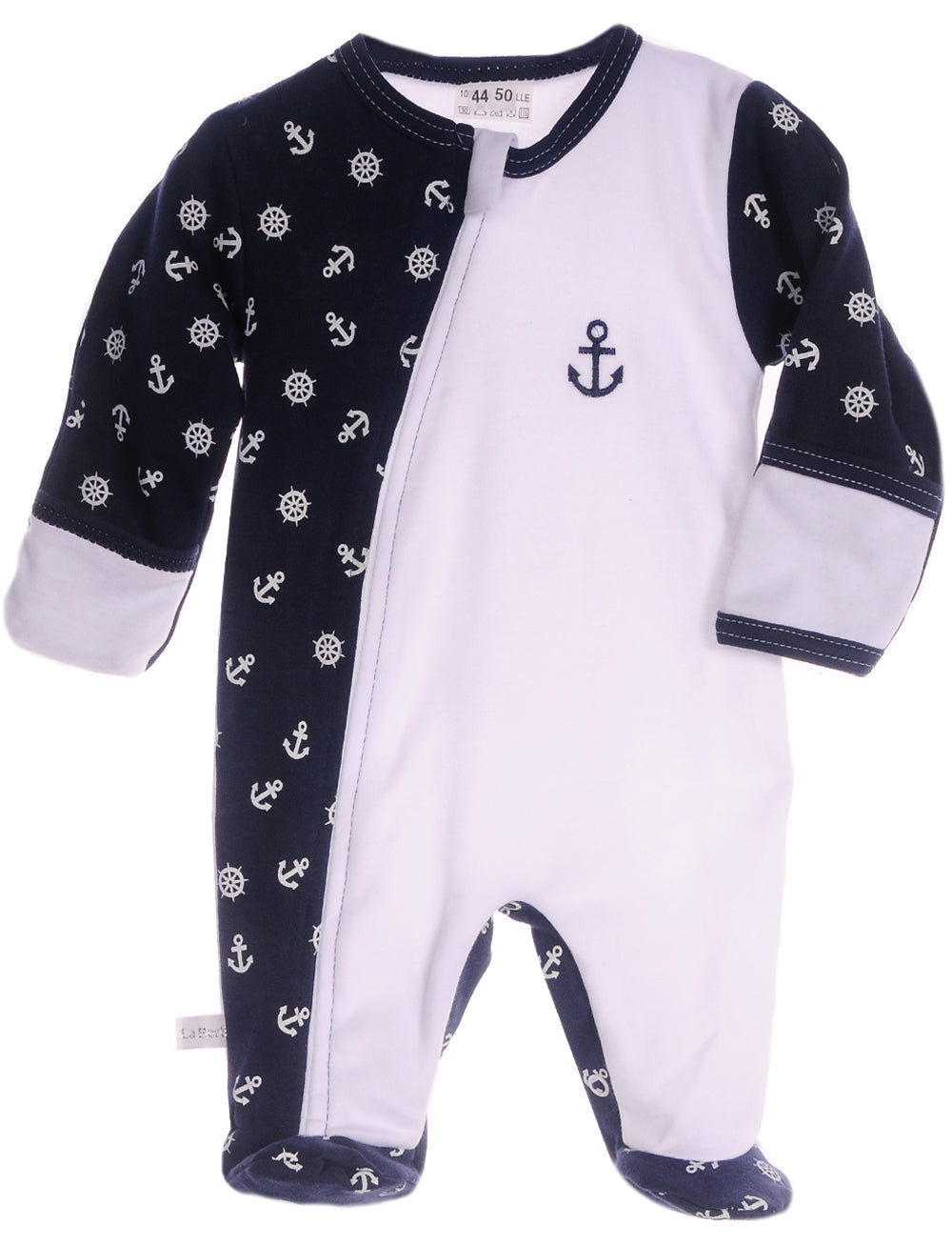 Baby Strampler Schlafanzug in weiß blau mit Anker Motiv