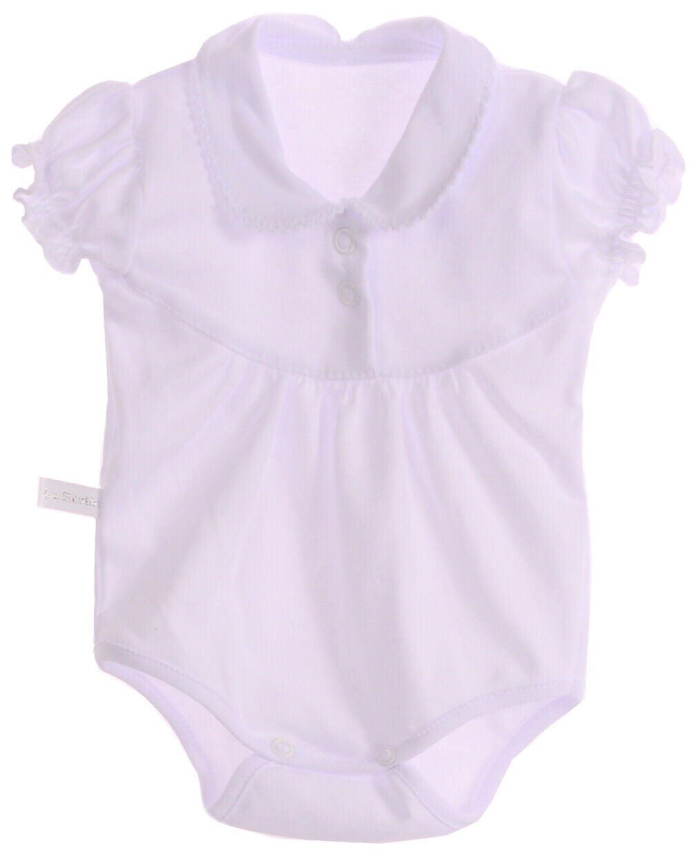 Baby Body in Weiß mit festlichem Kragen aus 100% Baumwolle, passt perfekt für festliche Anlässe oder zur Geburt, als auch für jeden Tag perfekt geeignet. Kurzarmbody mit Gummibündchen