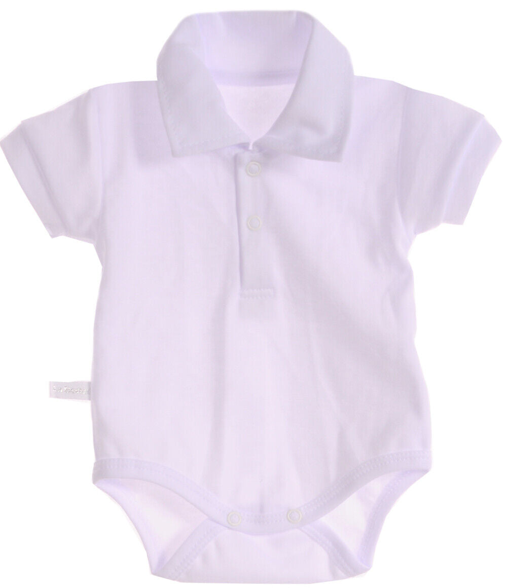Baby Body in Weiß mit festlichem Kragen aus 100% Baumwolle, passt perfekt für festliche Anlässe oder zur Geburt, als auch für jeden Tag perfekt geeignet. Kurzarmbody im Polo-Schnitt
