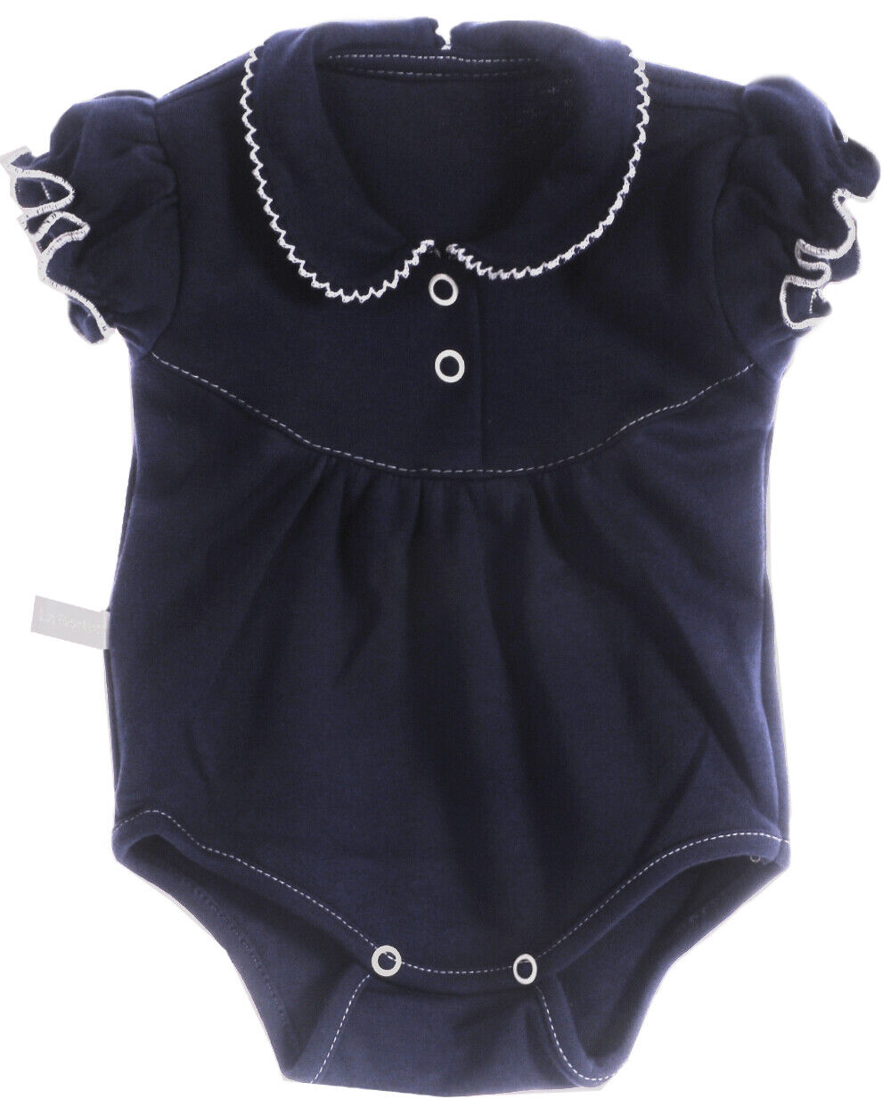 Baby Body in Navi (Blau) mit festlichem Kragen aus 100% Baumwolle, passt perfekt für festliche Anlässe oder zur Geburt, als auch für jeden Tag perfekt geeignet. Kurzarmbody mit Gummibündchen