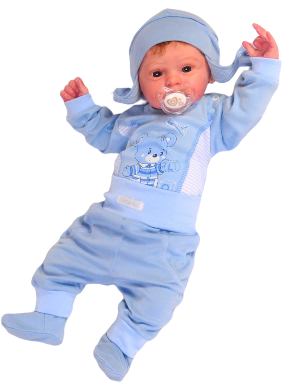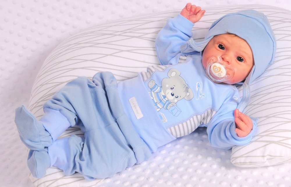 Body Hose und Mütze 3Tlg Baby Anzug in Blau mit Bärchen Aufdruck