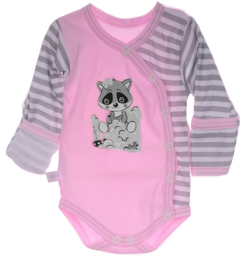 Dieser liebevoll gestaltete Wickelbody in Rosa-Grau gestreift mit niedlichem Waschbär-Aufdruck vereint Komfort und Funktionalität in einem. Hergestellt aus 100 % reiner Baumwolle, ist er besonders weich, hautfreundlich und atmungsaktiv – ideal für empfindliche Babyhaut.