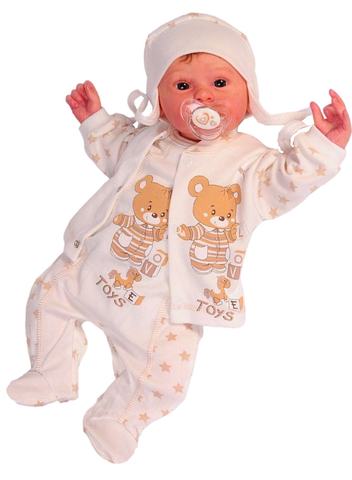 Baby-Strampler Set 3-teilig – Creme mit Sternchen-Muster & Bären-Aufdruck – Strampler, Hemdchen & Mütze – aus reiner Baumwolle – unisex