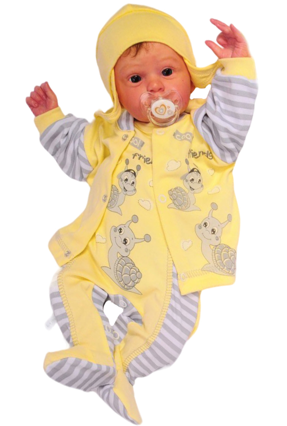 Strampler Mütze und Hemdchen Baby Anzug in Gelb mit Schnecken