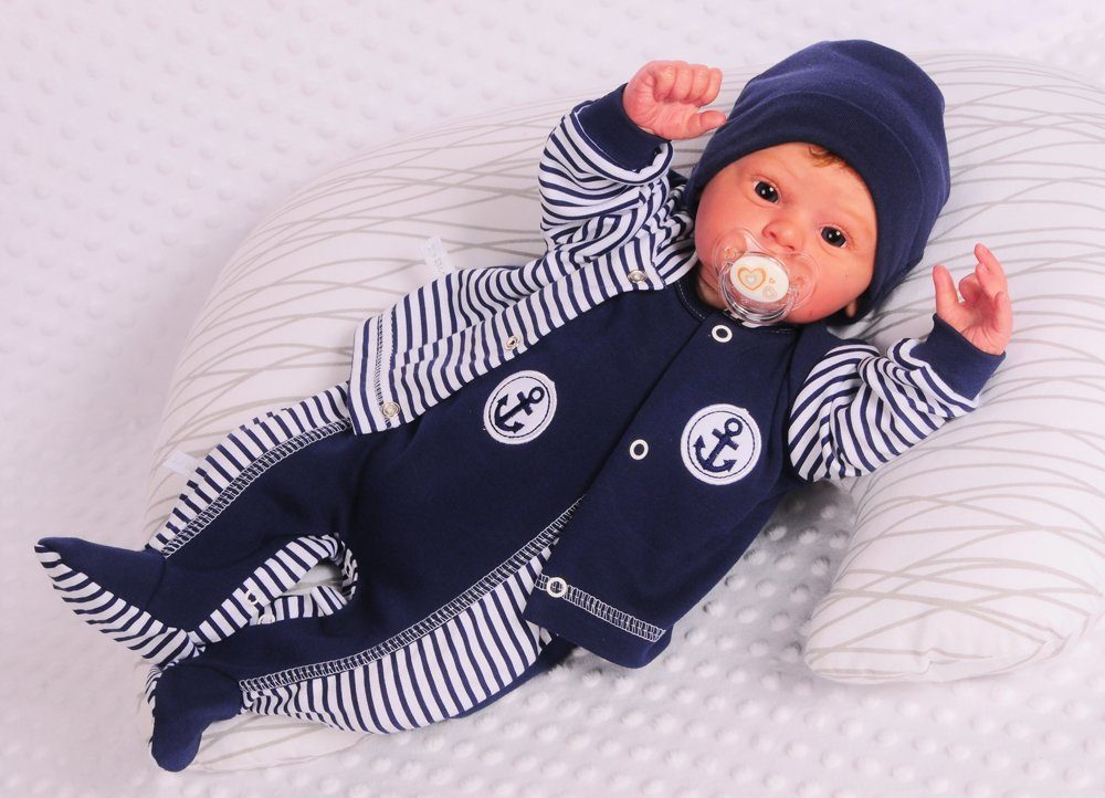 Strampler Mütze und Hemdchen Baby Anzug in Blau mit Anker