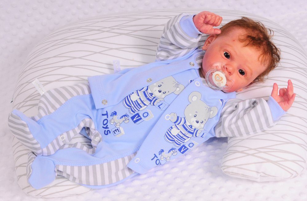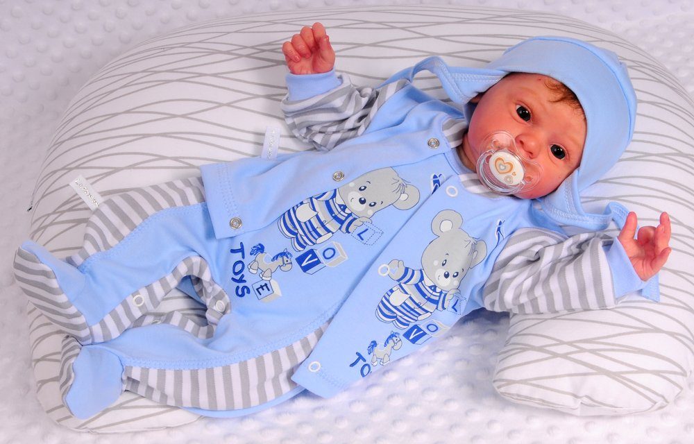 Dieses 3-teilige Set in Blau bietet nicht nur höchsten Komfort, sondern auch ein süßes Design mit Bärchen-Aufdruck und grauen Streifen – ein tolles Geschenk zur Geburt, das Ihr Baby warm und stilvoll kleidet.