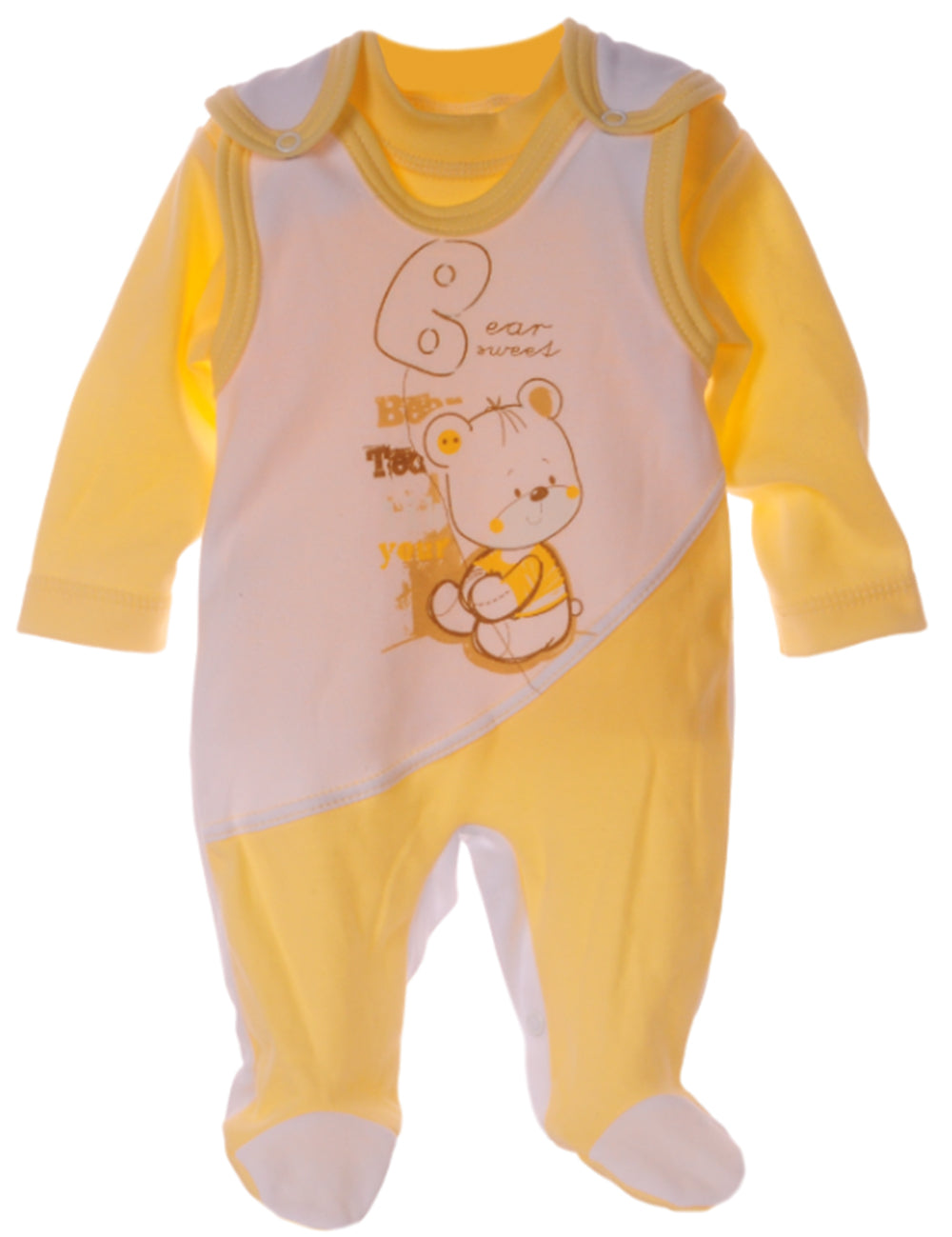 Strampler Mütze und Hemdchen Baby Anzug 3Tlg in Gelb mit Bärchen
