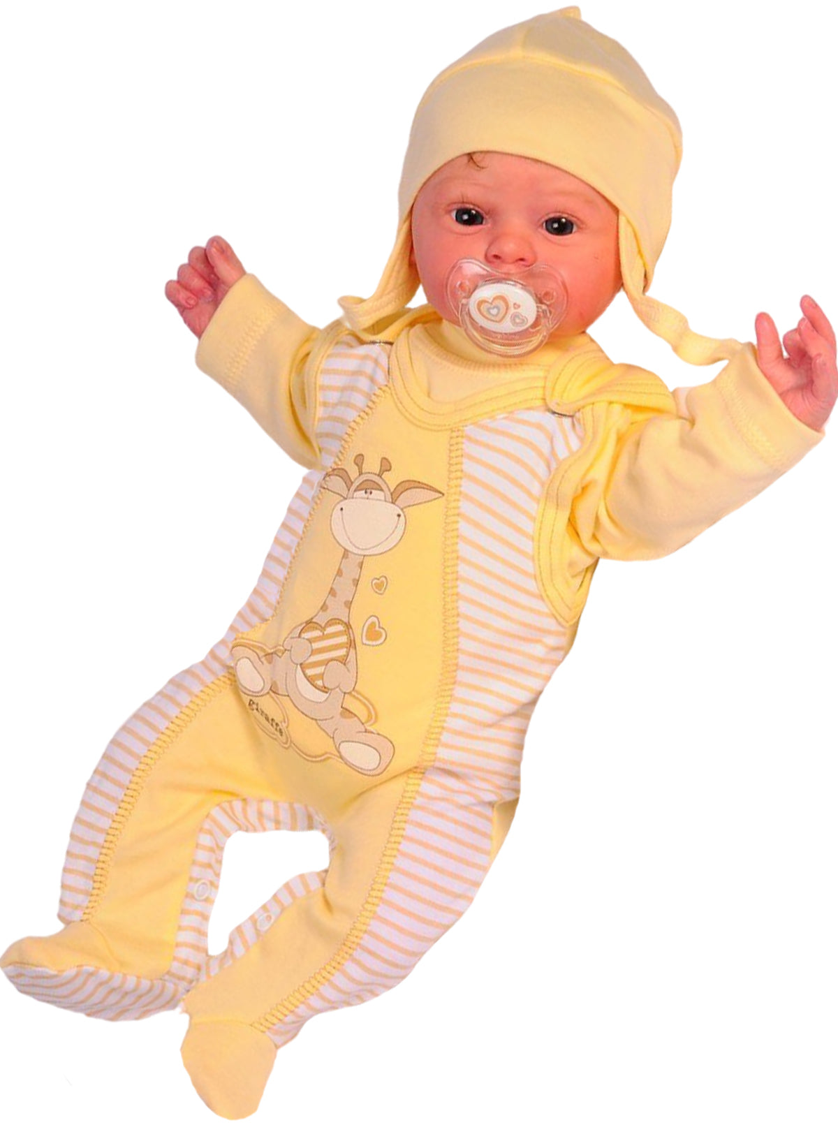 Fröhlich, bequem und liebevoll gestaltet – dieses 3-teilige Babyset in Gelb-Weiß gestreift mit niedlichem Giraffen-Motiv bringt Farbe und Wärme in die Garderobe deines Babys. Es besteht aus einem ärmellosen Strampler, einem weichen Hemdchen mit seitlichen Druckknöpfen sowie einer passenden Mütze mit Bindeband. Ein perfektes Outfit für die ersten Lebenswochen – neutral und unisex, für Baby Jungen und Mädchen gleichermaßen geeignet.