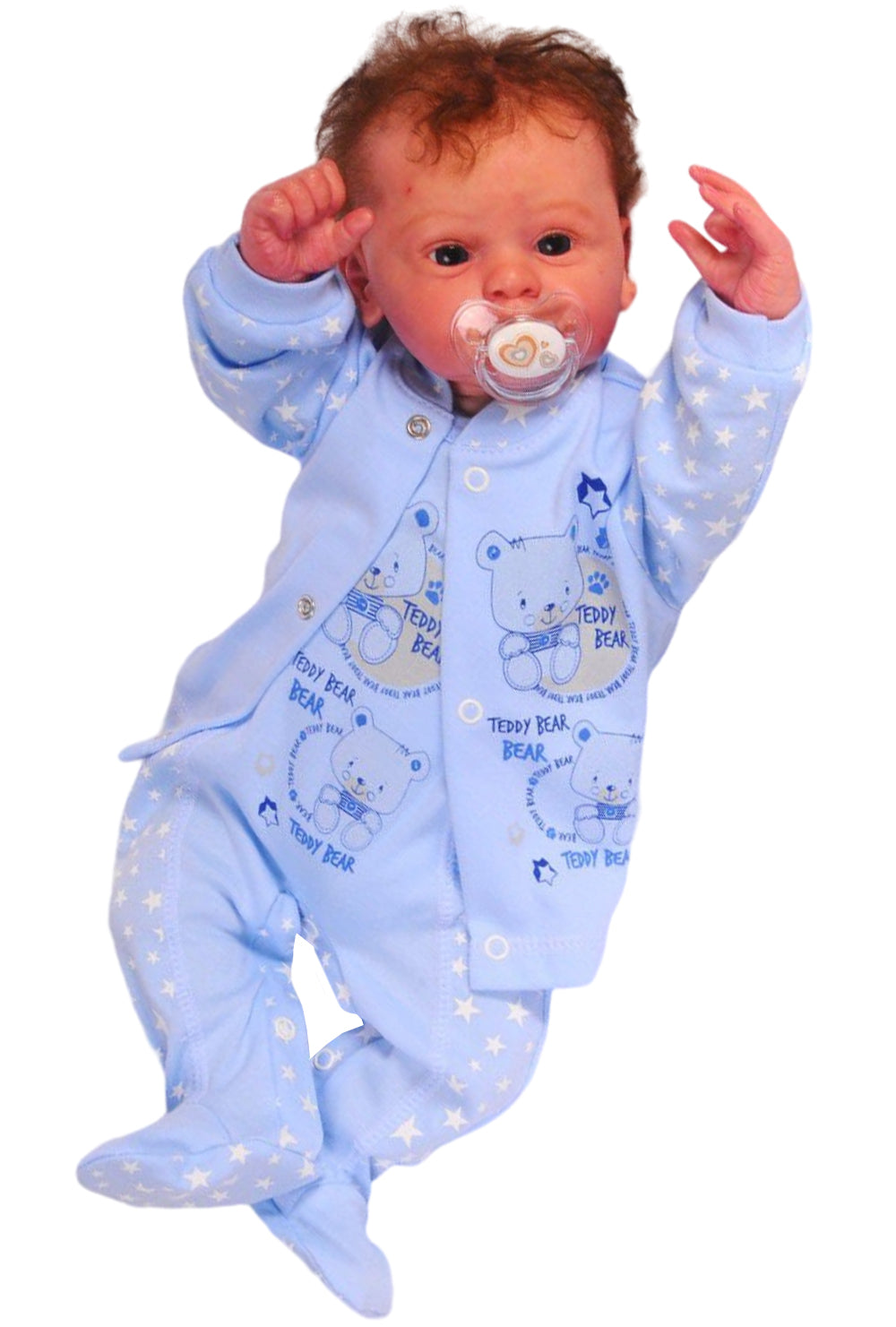Strampler Hemdchen Baby Anzug in Blau mit Sternchen und Bären